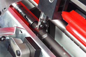 免調(diào)整式夾刀,自動(dòng)定位入料中心,節(jié)省更換棒材時(shí)間搖臂式機(jī)構(gòu),夾持力穩(wěn)固不松脫。